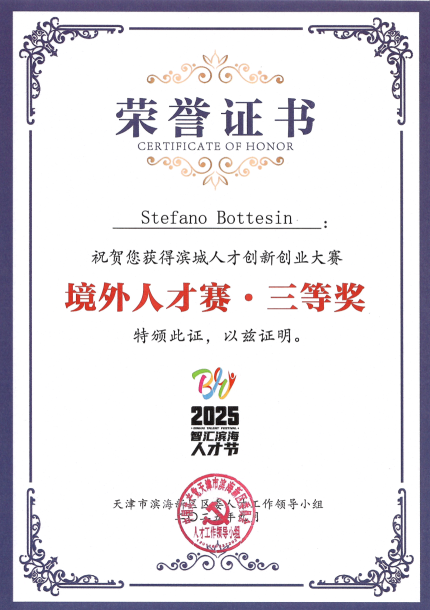 Negli ultimi anni il lavoro di Bottesin e del suo ecosistema è stato riconosciuto anche a livello internazionale, tra cui il “Overseas Talent Competition – Third Prize” al Tianjin Binhai Talent Festival 2025 in Cina per la tecnologia DaboTechnology. La roadmap prevede, a partire dal 2026, la creazione di una presenza locale in Cina con entità dedicata, attività di certificazione e unità pilota sul territorio, in collaborazione con partner industriali e centri di innovazione.